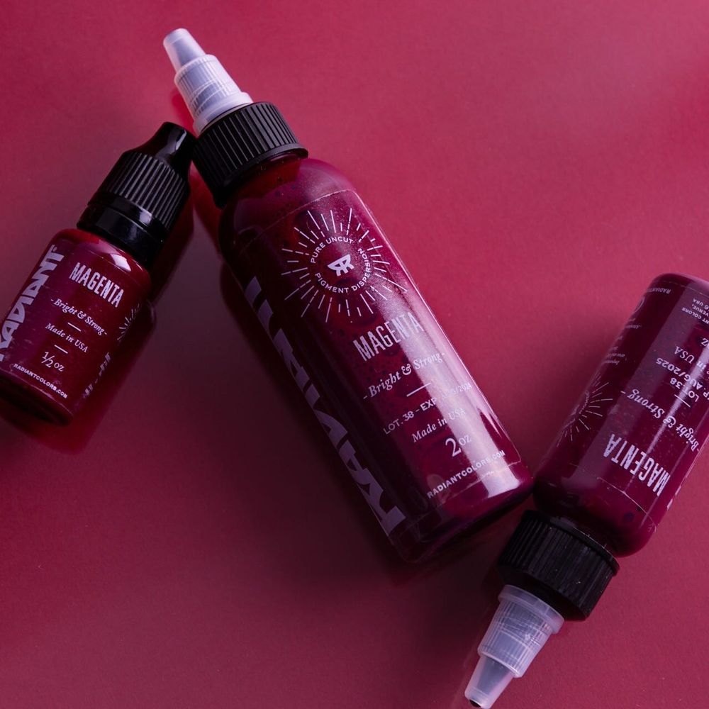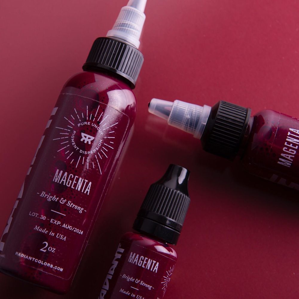 Radiant Ink đã làm việc chặt chẽ với các nghệ sĩ xăm hình nổi tiếng khắp nơi trên thế giới. Từ những kinh nghiệm này đã cho phép Radiant tạo ra dòng mực sử dụng công nghệ mới nhất trong xăm hình. Radiant Colors đã tạo ra những sắc tố đồng nhất, dễ sử dụng, tinh khiết. Hỗn hợp mực đồng nhất của Radiant tạo ra những màu sắc bền vững, lâu dài, tươi sáng. Màu sắc rực rỡ đó là cam kết! Radiant Ink cho phép bạn luôn nhìn được màu sắc thật khi xăm trên da.