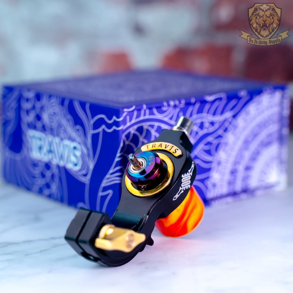 Máy xăm Travis Custom Orange sử dụng cho mọi loại phong cách từ á đến âu , máy đáp ứng hết các loại bóng , nét , nhồi màu , chuyển tông bá cháy con bọ chét luôn bạn eiiii. Motor thụy sỹ khỏe nhưng độ sát thương lại cực thấp.